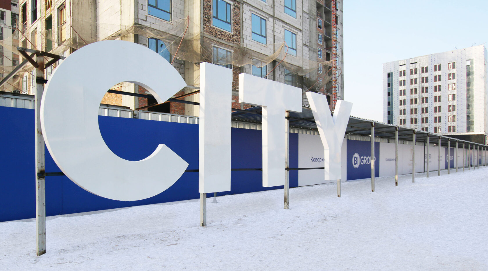 Большие объемные буквы – отличительная черта всех объектов BI Group бизнес-класса. Могут быть размещены как вплотную к забору, так и перед пешеходным коридором, идущим вдоль ограждения. Красная линия забора* оформляется алюминиевыми композитными панелями. Также в конструкции присутствуют лайтбоксы и блок с прорезанным окном для наблюдения за стройкой.